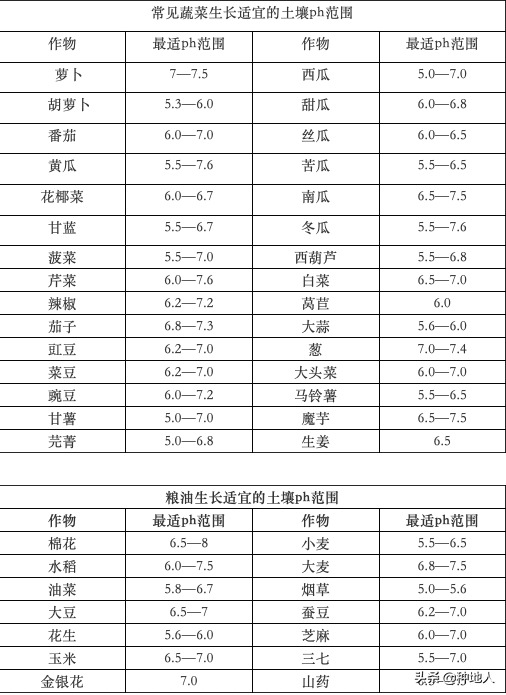 从上图我们可以看出,大多数作物在土壤中性的时候最易生长,反之,土壤过酸过碱对于作物正常生长都有影响。