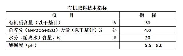 5、商品有机肥:国家已经发布了农业行业标准《NY525-2002-有机肥料》。商品有机肥料必须按肥料登记管理办法办理肥料登记,并取得登记证号,方可在农资市场上流通销售。有机肥料技术指标见下表。